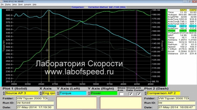 Максимальный прирост мощности составил +51 л.с. при 4240 об/мин